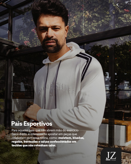 Para os pais que não abrem mão do exercício físico diário, é essencial investir em peças que complementem essa rotina. O moletom é uma escolha ideal, proporcionando conforto e praticidade. Além dos blusões, regatas, bermudas e calças confeccionadas em tecidos que não retenham calor, o moletom se destaca por sua versatilidade.